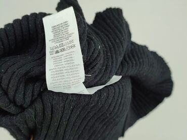 Sweter damski prążkowany, czarny - Fason: dopasowany, z dłuższą linią tułowia - Dekolt: V-neck - Rękaw: długi, zakończony mankietem - Dzianina: elastyczna, miękka, prążkowana (widoczne pionowe żeb...