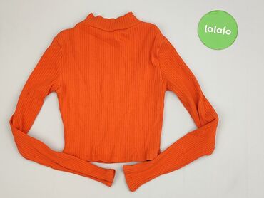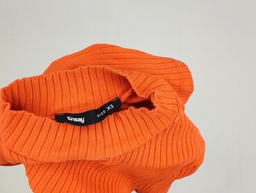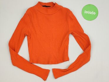 Pomarańczowy prążkowany top z długim rękawem Sinsay - Marka: Sinsay - Rozmiar: XS (metka widoczna na zdjęciu) - Krój: dopasowany, długość krótka/cropped - Dekolt: półgolf/stójka - Rękawy: długie -...