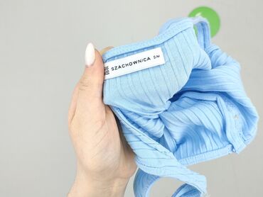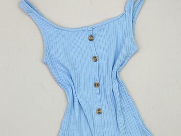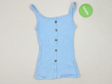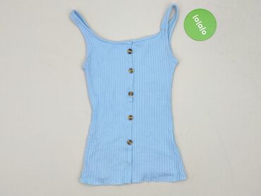 Bluzka ZARA, rozmiar S (EUR S / USA S / MEX 26) - Model: top bez rękawów z falbanami na ramionach - Kolor: jasnoniebieski, delikatny prążek (rib) - Krój: okrągły dekolt, lekko dopasowana sylwetka ...