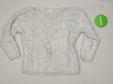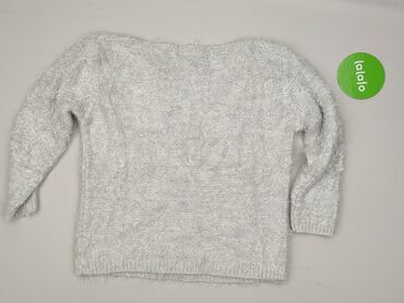 Sweter dzianinowy damski – jasnoszary - Fason: luźny, oversize z szerokimi rękawami typu kimono/dolman - Dekolt: łagodnie łódkowy - Długość: do bioder - Splot: wyraźna, miękka dzianina o drobnym, ...