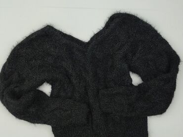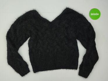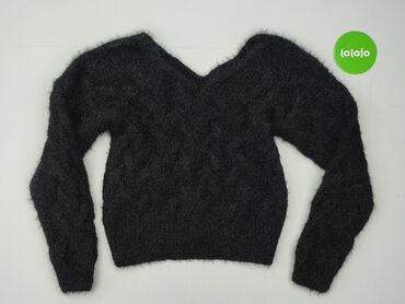 Czarny sweter damski z dekoltem w kształcie litery V, idealny na co dzień. Charakteryzuje się długimi rękawami i gładkim wzorem, co sprawia, że jest uniwersalnym elementem garderoby. Rozmiar S, odp...Stan: