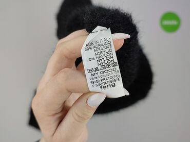 W serekCzarny, puszysty sweter damski z dekoltem w serek. Wykonany z miękkiej, włochatej przędzy o wyraźnej fakturze. Skład z metki: 70% nylon, 30% akryl. Wyprodukowany we Włoszech (Made in Italy).