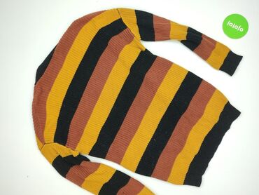Damski kardigan bez zapięcia, rozmiar S. - Kolor i wzór: melanżowe, poziome paski w odcieniach granatu i bieli - Krój: swobodny, lekko wydłużony, z kołnierzem/szeroką plisą z przodu; długie rękawy...