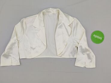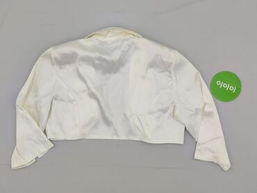 Elegancki krótki bolerko/żakiet satynowy - Kolor: ecru/śmietankowy, z połyskiem satyny - Fason: krótkie bolerko, bez zapięcia, zaokrąglone poły z przodu, lekko stojący kołnierzyk - Rękawy: długie,...