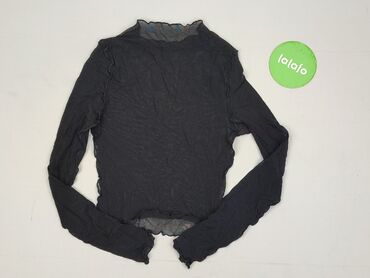 Czarna damska bluzka z długim rękawem z siatki - Fason: dopasowana, z okrągłym dekoltem - Rękawy: długie, wykonane z ażurowej siatki (mesh), kontrastujące z gładkim korpusem - Materiał (metka): 83...Stan: