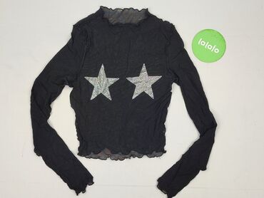 Czarna bluzka z siatki, długi rękaw, asymetryczny design. - Materiał: elastyczna siatka (mesh) + gładka dzianina wszyta po skosie z przodu i z tyłu - Kolor: czarny - Krój: dopasowany, lekko wydłuż...