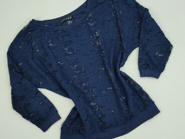 Sweter damski Atmosphere - Model: lekki sweter w paski - Kolor: granatowy w białe, poziome paski - Krój: luźniejszy, lekko wydłużony dół; rękawy długie, dekolt okrągły - Wykończenie: ściągacze prz...