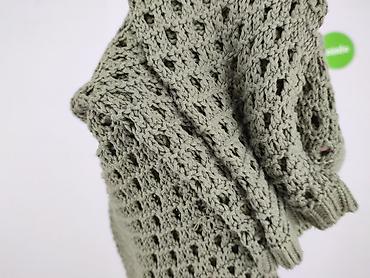 Sweter damski, zielony, dzianina - Fason: krótki/cropped, luźniejszy, z długim rękawem raglanowym - Splot: wyrazista, grubsza dzianina z dekoracyjnym wzorem w romb na przodzie; rękawy i tył w pion...
