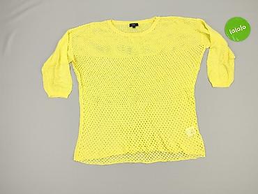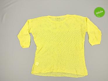 Sweter damski Reserved, rozmiar S - Kolor: jasny, neonowy żółty - Fason: ażurowy, lekko transparentny; rękawy 3/4; dół i mankiety wykończone ściągaczami - Dekolt: łódkowy z przodu; z tyłu efektown...