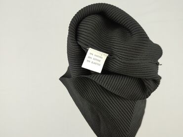 Czarny, prążkowany top damski z krótkim rękawem. - Fason: dopasowany, elastyczny, raglanowe rękawy - Dekolt: półgolf/stójka - Materiał z metki: 70% wiskoza, 30% poliester – miękki, sprężysty i wyg...