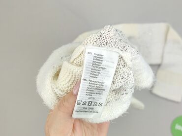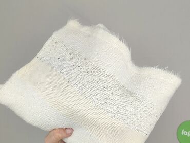 Biały sweter damski z długim rękawem, ozdobiony poziomymi paskami z cekinami. Sweter ma okrągły dekolt i jest wykonany z mieszanki poliestru i akrylu, co zapewnia miękkość i komfort noszenia. Idealny na co dzień, dodaje subtelnego blasku każdej stylizacji.
