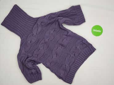 Fioletowy sweter damski z golfem - Fason: bluzka/sweter z krótkim rękawem - Dekolt: wysoki golf - Rękawy: krótkie, zakończone szerokim, prążkowanym ściągaczem - Dół: szeroki ściągacz z dekoracyjny...Stan: