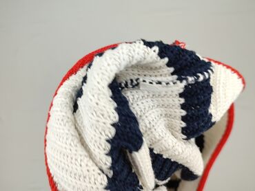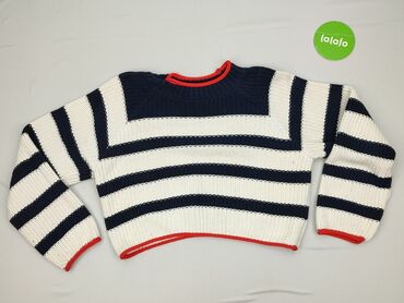 Ażurowy sweter damski Chok Revolution, rozmiar M. - Kolor: melanż biało‑niebieski - Fason: krótki (cropped), lekko oversize z obniżoną linią ramion - Dekolt: w serek - Rękawy: długie - Splot: ażur...