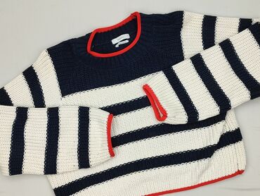 Sweter damski Pins and Needles, rozmiar S - Fason: luźny, z okrągłym dekoltem i długim rękawem - Dzianina o wyraźnej, ażurowej strukturze “bouclé” - Wzór: poziome pasy w kolorach zielonym, niebies...