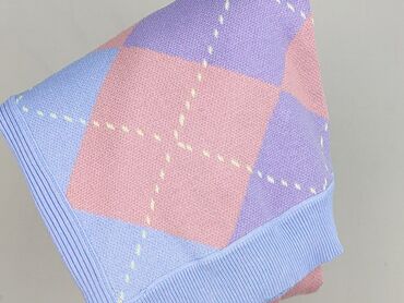 Stylowy, pastelowy sweter idealny do codziennych stylizacji – łączy gładkie prążki z klasycznym wzorem argyle, tworząc efektowny, dziewczęcy look. Używany; stan bardzo dobry.