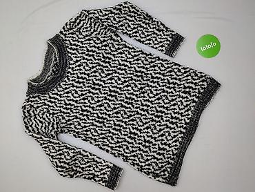 Sweter damski z dzianiny, czarno‑biały, wzór żakardowy