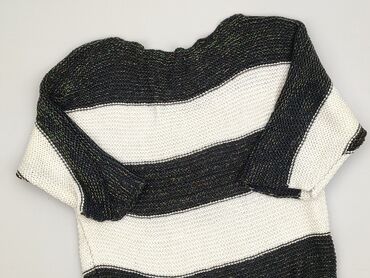 Ażurowy sweter/ponczo damskie w paski - Krój: luźny, z krótkim rękawem, obniżona linia ramion; dół lekko zaokrąglony - Splot: duże oczka (siateczka), idealny do warstwowych stylizacji lub na strój...