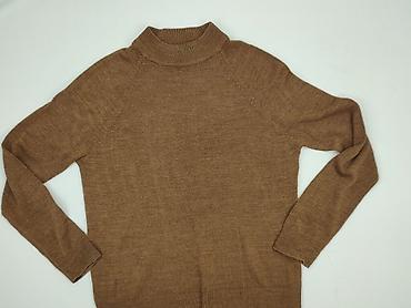 Sweter damski MLE, rozmiar S, wyprodukowany w Polsce. - Fason: oversize z wysokim, miękkim golfem - Kolor: karmelowy/beżowy - Dzianina o melanżowej fakturze, elastyczna i miła w dotyku - Skład: 30...