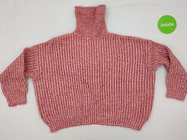 Różowy krótki sweter Bershka - Marka: Bershka - Rozmiar z metki: S (EUR S / USA S / MEX 26) - Fason: krótki/cropped, z długim rękawem - Dekolt: półgolf z prążkowanym ściągaczem - Kolor: intensywny...