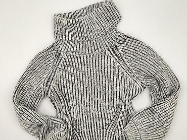 Sweter prążkowany BIK BOK - Rozmiar: XS (na metce) - Fason: dopasowany, elastyczny, z półgolfem - Wzór: poziome pasy w kolorze czarnym i jasnoszarym - Rękawy: długie - Materiał: 80% wiskoza, 20% n...