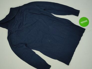 Sweter damski z golfem, kobaltowy - Model: długi, asymetryczny kardigan/sweterek z wyraźnie wydłużonymi, spiczastymi połami z przodu - Kołnierz: obszerny, miękki golf - Rękawy: długie, zakończone ...