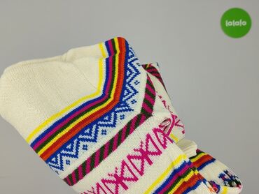 - Wzór: wielokolorowe pasy i motywy etno/geometryczne (niebieski, różowy, żółty, zielony, czerwony, fioletowy); drobne postacie w rzędzie u dołu