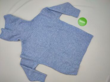 Sweter damski z golfem, błękitny - Fason: dłuższy, lekko dopasowany, dzianinowy - Kołnierz: obszerny golf z miękkiej, pętelkowej dzianiny (efekt frote) - Rękawy: długie, zakończone szerokimi manki...Stan: