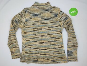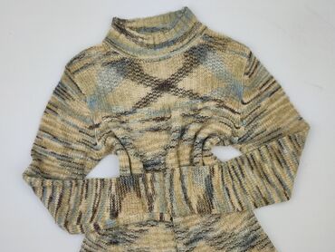Sweter damski z golfem, beżowy z kolorowymi nepsami - Fason: luźny, z obniżoną linią ramion i długimi rękawami - Kołnierz: wysoki, elastyczny golf - Splot: gruby, warkoczowy na przodzie; tył i ręk...