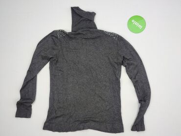 Sweter damski Reserved, rozmiar S - Model: ciepły, prążkowany golf - Kolor: jasnoszary melanż z delikatnymi niebieskawymi akcentami - Fason: dłuższy tył, lekko asymetryczny dół; dekoracyjne ażurow...
