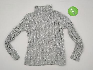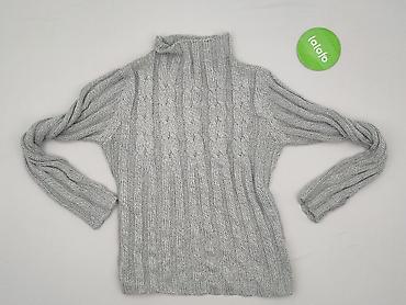 Sweter damski z golfem, dzianinowy, kolor jasnoszary/melange. - Fason: dłuższy sweter z wysokim, szerokim golfem; rękawy długie. - Splot: wyraźna, gruba faktura o strukturalnym, „koszykowym” wzorz...