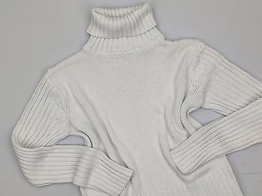 Sweter z golfem, kolor ecru/kremowy. - Rozmiar: S (na metce) - Skład: 100% akryl - Krój: prosty, lekko luźny - Dekolt: wysoki golf, szeroki ściągacz - Wykończenia: elastyczne ściągacze przy mankie...