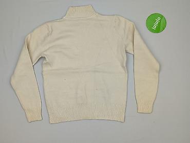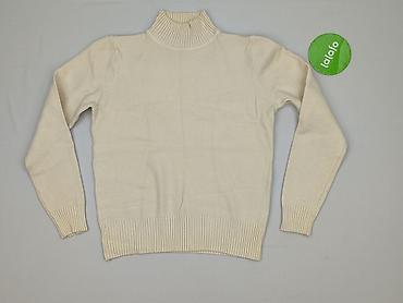 Damski golf swetrowy, prążkowany - Rozmiar: S (z metki) - Skład: 100% poliester - Kolor: jasny beż/ecru - Fason: dopasowany korpus z pionowym prążkowaniem, długi wywijany golf, raglanowe rękawy, e...Stan: