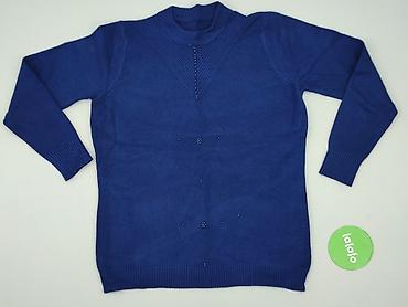 Damski sweter z golfem, granatowy - Fason: luźny, nietoperz (szerokie rękawy zwężane przy nadgarstkach) - Kołnierz: wysoki, prążkowany golf - Wykończenia: elastyczne, szerokie, prążkowane ściągacz...