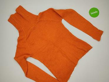Sweter damski z golfem w kolorze intensywnej pomarańczy. - Rozmiar: X/XXL (z metki) - Skład: 35% wełna, 35% wiskoza, 30% akryl - Krój: prosty, lekko luźny, rozcięcia po bokach u dołu - Rękaw: dług...