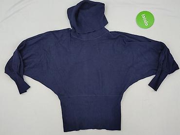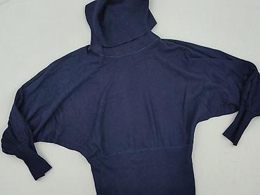 Damski sweter z golfem, granatowy - Fason: luźny, nietoperz (szerokie rękawy zwężane przy nadgarstkach) - Kołnierz: wysoki, prążkowany golf - Wykończenia: elastyczne, szerokie, prążkowane ściągacz...Stan:
