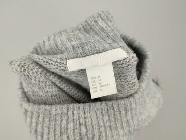 Damski sweter H&M w rozmiarze M, wykonany z mieszanki bawełny i poliestru. Sweter ma okrągły dekolt i długie rękawy, a jego faktura jest lekko melanżowa, w odcieniach bieli i zieleni. To wszechstro...