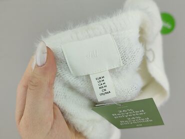 Sweter damski marki H&M w kolorze kremowym z efektem melanżu, wykonany z 100% akrylu. Posiada okrągły dekolt z ozdobnym, ażurowym wykończeniem. Charakteryzuje się ażurowym splotem na plecach i górn...
