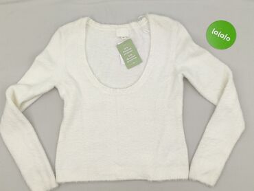 Sweter damski H&M, rozmiar S - Klasyczny krój z okrągłym dekoltem - Kolor: jasnoszary melanż - Dzianina miękka i przyjemna w dotyku - Ściągacze przy dekolcie, rękawach i u dołu - Skład materiału (...