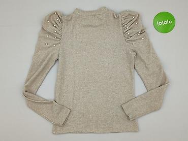 Sweter damski Zara Trafaluc - Model: krótki, swobodny krój (boxy), rękaw do łokcia - Kolor: jasny beż/melange - Ozdoby: gęsto naszyte perły na przodzie i rękawach - Dekolt: okrągły - Dzianina mięk...