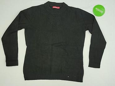 Czarny sweter damski z ażurowymi wstawkami - Klasyczny fason z okrągłym dekoltem - Ażurowa, szydełkowa struktura na ramionach i rękawach - Gładki panel z przodu i z tyłu tułowia - Długie rękawy, l...