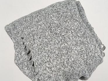 Szary damski sweter/ponczo z dzianiny, rozmiar XL - Krój oversize, luźny, z obniżoną linią ramion – między swetrem a ponczo. - Okrągły dekolt. - Ozdobne, szerokie pasy z czarnej koronki – wzdłuż p...