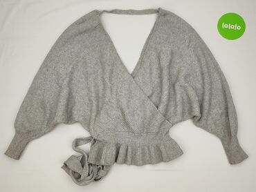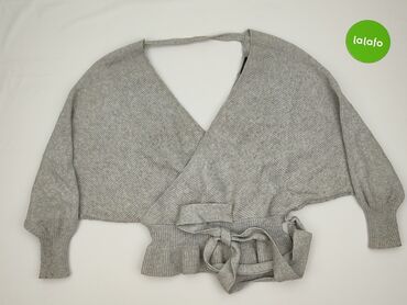 - Fason: krótki sweter typu wrap/cross-over z głębokim dekoltem V i długimi rękawami.