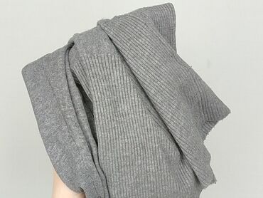 Szary damski sweter/ponczo z dzianiny, rozmiar XL - Krój oversize, luźny, z obniżoną linią ramion – między swetrem a ponczo. - Okrągły dekolt. - Ozdobne, szerokie pasy z czarnej koronki – wzdłuż p...