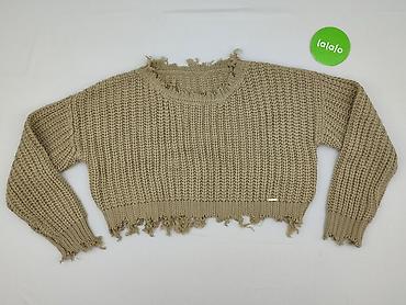 Beżowy sweter oversize z grubym splotem - Krój: luźny/oversize, opuszczona linia ramion - Dekolt: okrągły - Dół: lekko asymetryczny – przód krótszy, tył dłuższy - Rękawy: długie, zakończone ściąga...