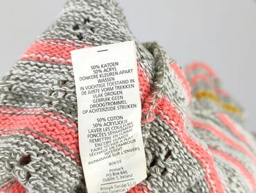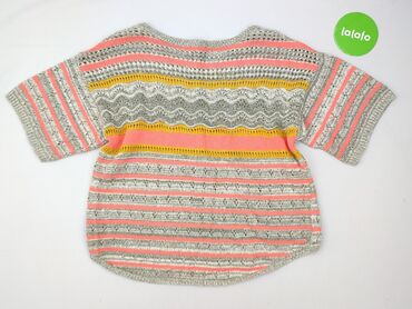 Sweter damski Pins and Needles, rozmiar S - Fason: luźny, z okrągłym dekoltem i długim rękawem - Dzianina o wyraźnej, ażurowej strukturze “bouclé” - Wzór: poziome pasy w kolorach zielonym, niebies...
