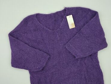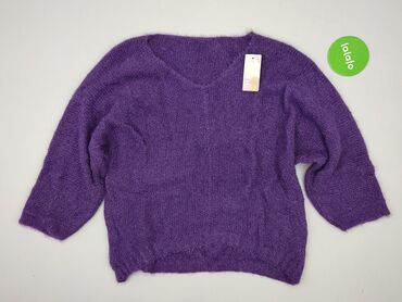 Fioletowy sweter damski o luźnym kroju, wykonany z lekkiego, ażurowego materiału, idealny na cieplejsze dni. Charakteryzuje się szerokim dekoltem w łódkę oraz rękawami o długości 3/4, które posiada...