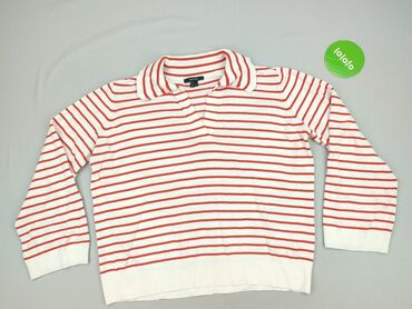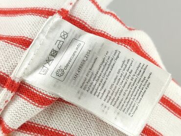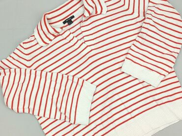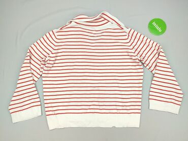 Sweter damski Esmara w paski - Fason: klasyczny, lekko dłuższy, z dekoltem w serek i długim rękawem - Wzór: poziome pasy w kolorach czerwonym, białym i granatowym (marynistyczny styl) - Dzianina: ...
