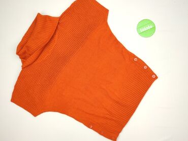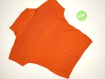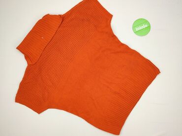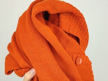 Pomarańczowe ponczo damskie z dzianiny. Charakteryzuje się wzorem w warkocze i ażurowe pasy, co nadaje mu unikalny wygląd. Idealne do noszenia na co dzień, zapewniające komfort i styl. Pasuje do wi...Stan: