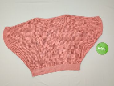 Ażurowy sweter/bluzka dzianinowa w kolorze jasnoróżowym. - Krój: luźny, swobodny, lekko przedłużony tył (asymetryczny dół). - Rękaw: krótki, zakończony szerokim, elastycznym ściągaczem. - Dekolt: ...