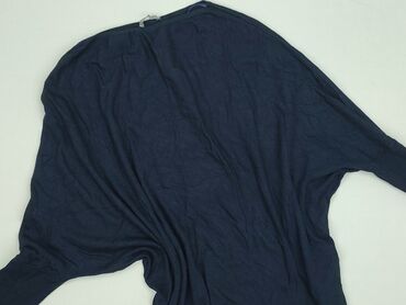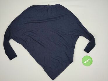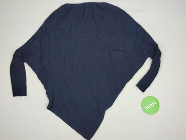 Damska kamizelka/ponczo dzianinowe - Kolor: granatowy - Fason: bez zapięcia, swobodny krój, krótki rękaw/ramiączko - Splot: mieszany – ozdobne warkocze po bokach, pas struktur na środku przodu i t...